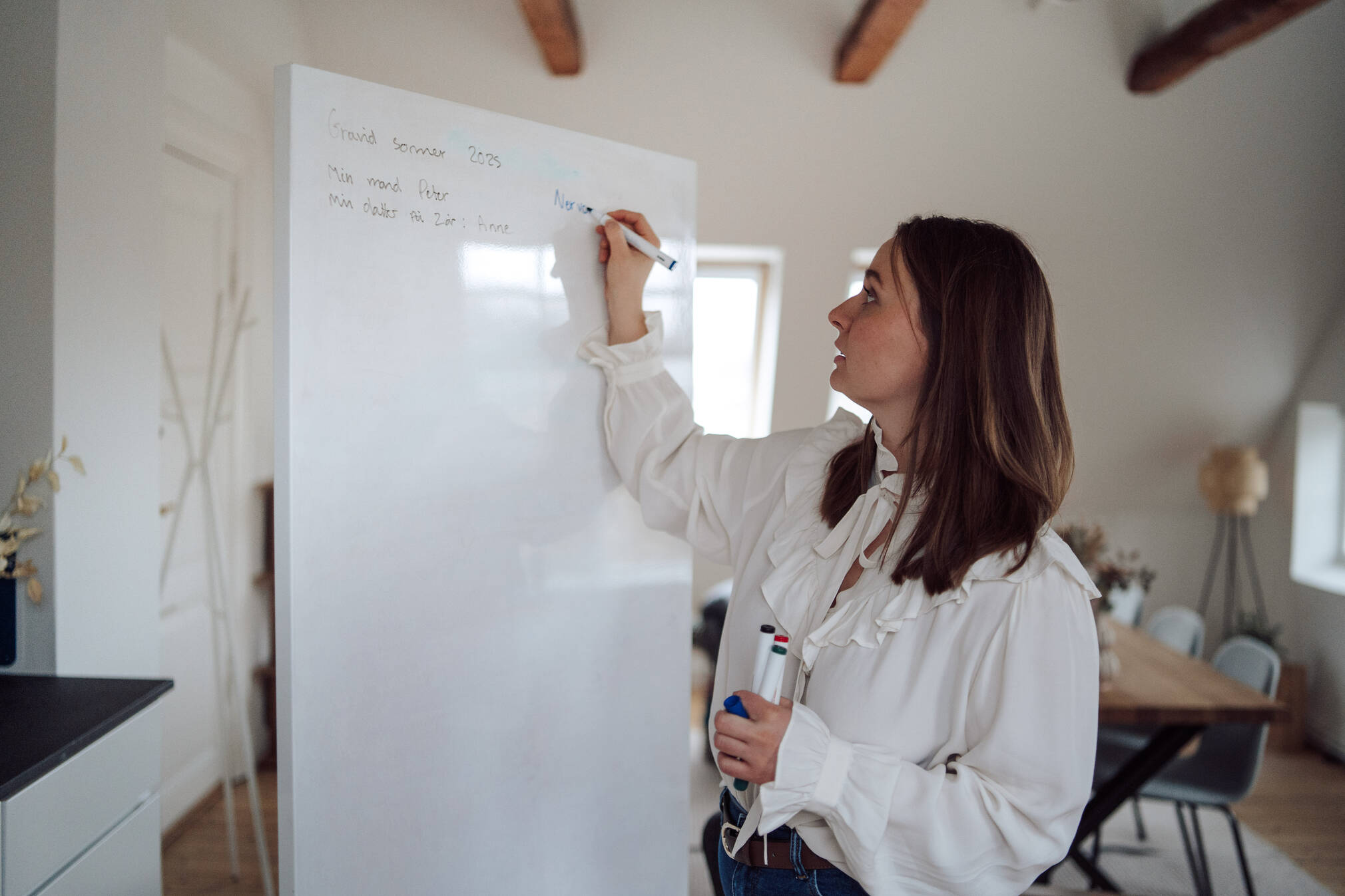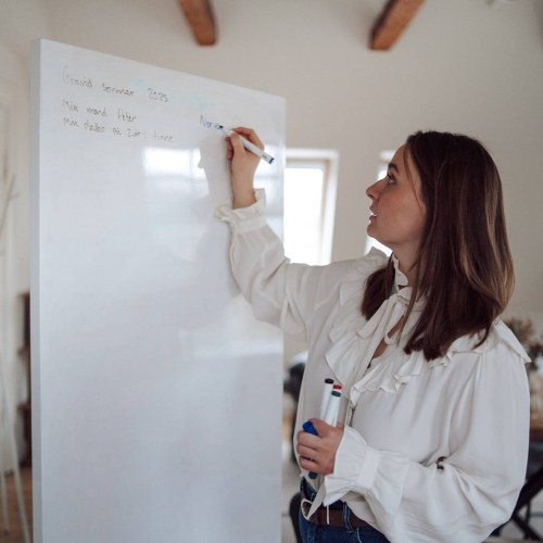 Jeg bruger tavlen som et aktivt redskab i mine samtaler, når jeg skriver dine ord ned, præcis som de bliver sagt. Udover at tavlearbejdet gør samtalerne håndgribelige og strukturerede, så er det også min oplevelse, at det er nemmere at tale om det sagte, når ordene står på tavlen.